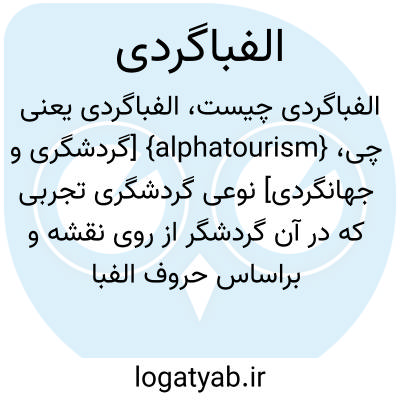 {alphatourism} [گردشگری و جهانگردی] نوعی گردشگری تجربی که در آن گردشگر از روی نقشه و براساس حروف الفبا اولین و آخرین خیابان را مشخص و خطی بین این دو نقطه ترسیم می کند و سپس مسیر بین آنها را پیاده می پیماید