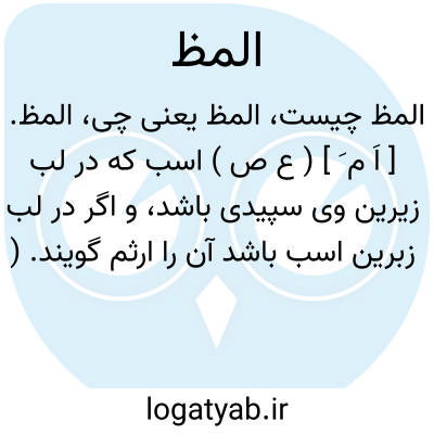 المظ. [ اَ م َ ] ( ع ص ) اسب که در لب زیرین وی سپیدی باشد، و اگر در لب زبرین اسب باشد آن را ارثم گویند. ( منتهی الارب ) ( آنندراج ) ( صبح الاعشی ج 2 ص 19 ). در حاشیه صبح الاعشی آمده: اصل آن انمط با نون و طاء بوده و مصحف است - انتهی. و رجوع به انمط و اقرب الموارد ذیل ماده نمط شود.