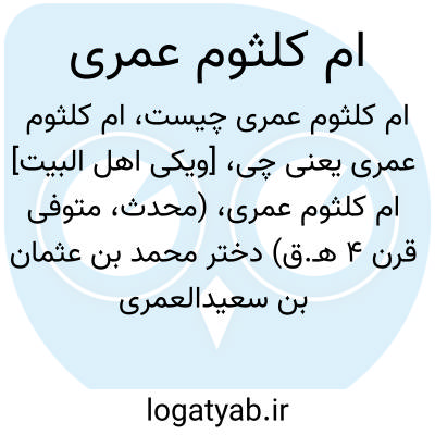 [ویکی اهل البیت] ام کلثوم عمری، (محدث، متوفی قرن 4 هـ.ق) دختر محمد بن عثمان بن سعیدالعمری دومین نایب خاص حضرت ولی عصر عجل الله تعالی فرجه شریف در غیبت صغری، بانویی فاضل، و راوی حدیث بود.