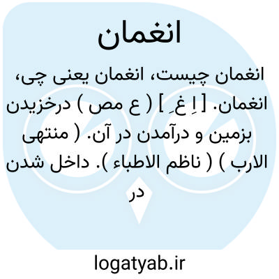 انغمان. [ اِ غ ِ ] ( ع مص ) درخزیدن بزمین و درآمدن در آن. ( منتهی الارب ) ( ناظم الاطباء ). داخل شدن در زمین و غایب شدن. ( اقرب الموارد ).