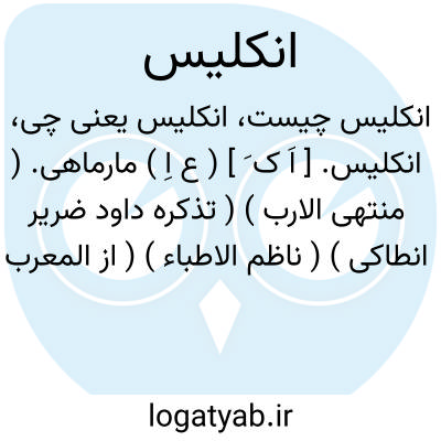 انکلیس. [ اَ ک َ ] ( ع اِ ) مارماهی. ( منتهی الارب ) ( تذکره داود ضریر انطاکی ) ( ناظم الاطباء ) ( از المعرب جوالیقی ص 338 ). انقلیس. جری. جریث. حنکلیس. جنکلیز. ( یادداشت مؤلف ).