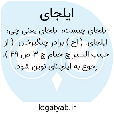 لغت نامه دهخدا ایلجای. ( اِخ ) برادر چنگیزخان. ( از حبیب السیر چ خیام ج 3 ص 49 ). رجوع به ایلچتای نوین شود.