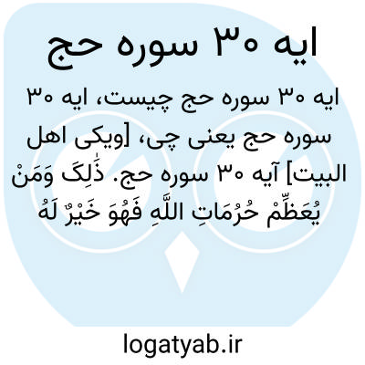 [ویکی اهل البیت] آیه 30 سوره حج. ذَٰلِکَ وَمَنْ یُعَظِّمْ حُرُمَاتِ اللَّهِ فَهُوَ خَیْرٌ لَهُ عِنْدَ رَبِّهِ ۗ وَأُحِلَّتْ لَکُمُ الْأَنْعَامُ إِلَّا مَا یُتْلَیٰ عَلَیْکُمْ ۖ فَاجْتَنِبُوا الرِّجْسَ مِنَ الْأَوْثَانِ وَاجْتَنِبُوا قَوْلَ الزُّورِ