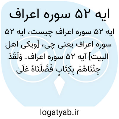 [ویکی اهل البیت] آیه 52 سوره اعراف. وَلَقَدْ جِئْنَاهُمْ بِکِتَابٍ فَصَّلْنَاهُ عَلَیٰ عِلْمٍ هُدًی وَرَحْمَةً لِقَوْمٍ یُؤْمِنُونَ
