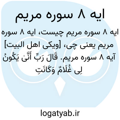 [ویکی اهل البیت] آیه 8 سوره مریم. قَالَ رَبِّ أَنَّیٰ یَکُونُ لِی غُلَامٌ وَکَانَتِ امْرَأَتِی عَاقِرًا وَقَدْ بَلَغْتُ مِنَ الْکِبَرِ عِتِیًّا