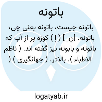 باتونه. [ن ِ ] ( اِ ) کوزه پر از آب که باتوته و بابوته نیز گفته اند. ( ناظم الاطباء ). بالادر. ( جهانگیری ) ( شعوری ).