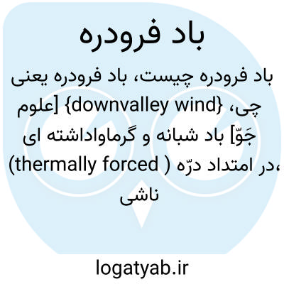 {downvalley wind} [علوم جَوّ] باد شبانه و گرماواداشته ای (thermally forced ) در امتداد درّه، ناشی از سرمایش هوای درّه، یا مؤلفۀ شبانۀ سامانه های باد کوه درّه در شارش های همدیدی ضعیف متـ. نسیم کوه mountain breeze
