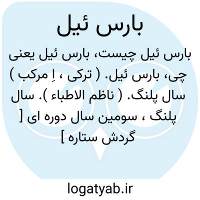 بارس ئیل. ( ترکی، اِ مرکب ) سال پلنگ. ( ناظم الاطباء ). سال پلنگ، سومین سال دوره ای [ گردش ستاره ] مغول. ( دِمزن ). رجوع به بارس و پارس و پارس ئیل شود.