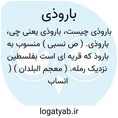 باروذی. ( ص نسبی ) منسوب به باروذ که قریه ای است بفلسطین نزدیک رمله. ( معجم البلدان ) ( انساب سمعانی ).