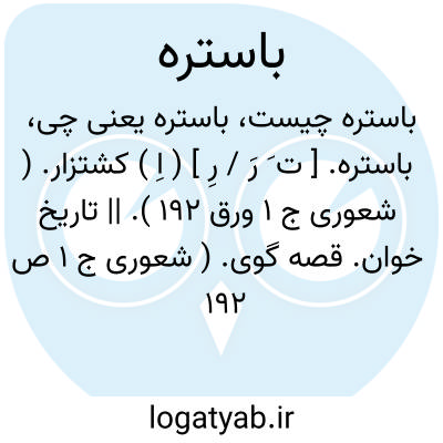 باستره. [ ت َ رَ / رِ ] ( اِ ) کشتزار. ( شعوری ج 1 ورق 192 ). || تاریخ خوان. قصه گوی. ( شعوری ج 1 ص 192 ) و رجوع به باسره و باسرم شود.