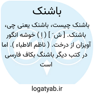 باشنک. [ ش َ ] ( اِ ) خوشه انگور آویزان از درخت. ( ناظم الاطباء ). اما در کتب دیگر باشنگ بکاف فارسی است و رجوع به باشنگ شود. || خیاری که جهت تخم نگاهدارند. ( ناظم الاطباء ). و رجوع به باشنگ شود.