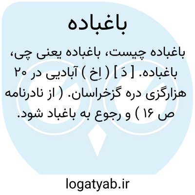 باغباده. [ دَ ] ( اِخ ) آبادیی در 20 هزارگزی دره گزخراسان. ( از نادرنامه ص 16 ) و رجوع به باغباد شود.