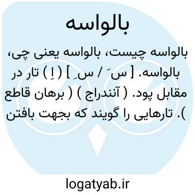 بالواسه. [ س َ / س ِ ] ( اِ ) تار در مقابل پود. ( آنندراج ) ( برهان قاطع ). تارهایی را گویند که بجهت بافتن مهیا ساخته اند و آنرا تانه نیز خوانند.( فرهنگ جهانگیری ) ( از فرهنگ شعوری ج 1 ص 192 ). ریسمانهائی که بطور تار ( مقابل پود ) مهیا شده باشد. ( فرهنگ نظام ). تار جامه و بافته مقابل پود. ( ناظم الاطباء ). ریسمان پارچه که در طول واقع شود. تار. تاره. تانه. فرت. سدی. حایل. مقابل پود. رجوع به بالوسه شود.