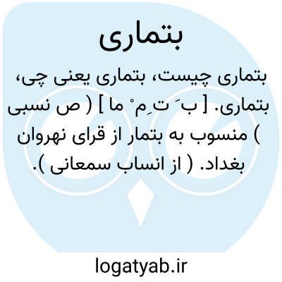 بتماری. [ ب َ ت ِم ْ ما ] ( ص نسبی ) منسوب به بتمار از قرای نهروان بغداد. ( از انساب سمعانی ).