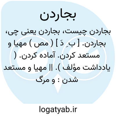 بجاردن. [ ب ِ دَ ] ( مص ) مهیا و مستعد کردن. آماده کردن. ( یادداشت مؤلف ). || مهیا و مستعد شدن: و مرگ را بجارد پیش از آنکه مرگ به او آید. ( از تفسیر ابوالفتوح رازی، ج 4 ص 486 ). و رجوع به بجارده شود.