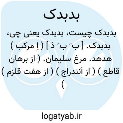 بدبدک. [ ب َ ب َ دَ ] ( اِ مرکب ) هدهد. مرغ سلیمان. ( از برهان قاطع ) ( از آنندراج ) ( از هفت قلزم ) ( انجمن آرا ).