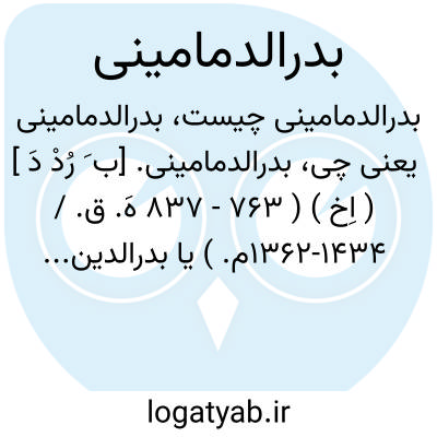 بدرالدمامینی. [ب َ رُدْ دَ ] ( اِخ ) ( 763 - 837 هَ. ق. / 1362-1434م. ) یا بدرالدین... محمدبن ابی بکربن عمر مخزومی قرشی. دانشمند و شاعر و نحوی بود در اسکندریه بدنیا آمدو مدتی در قاهره اقامت گزید سپس به هند رفت و در شهر کلبرجا درگذشت کتابهایی از او باقی مانده. رجوع به اعلام زرکلی ج 3 ص 872 و ریحانة الادب ج 2 ص 22 شود.