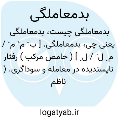 بدمعاملگی. [ ب َ م ُ م َ / م ِ ل َ / ل ِ ] ( حامص مرکب ) رفتار ناپسندیده در معامله و سوداگری. ( ناظم الاطباء ).