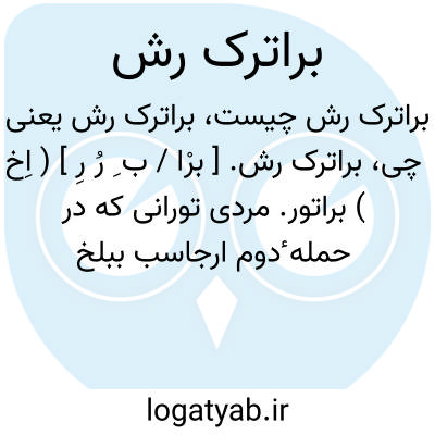 براترک رش. [ برْا / ب ِ رُ رِ ] ( اِخ ) براتور. مردی تورانی که در حمله ٔدوم ارجاسب ببلخ زردشت پیامبر ایرانی را بشهادت رسانید. ( از فرهنگ فارسی معین ). و رجوع به زردشت شود.