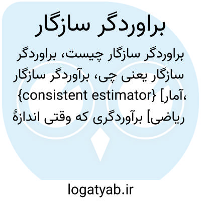 {consistent estimator} [آمار، ریاضی] برآوردگری که وقتی اندازۀ نمونه به بی نهایت میل کند، در احتمال، به پارامتر مورد برآورد بگراید