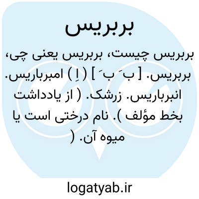 بربریس. [ ب َ ب َ ] ( اِ ) امبرباریس. انبرباریس. زرشک. ( از یادداشت بخط مؤلف ). نام درختی است یا میوه آن. ( آنندراج ). مأخوذ از ترکی. میوه ای سرخ رنگ وترش که بزبان فرانسه گروزی گویند. ( ناظم الاطباء ).