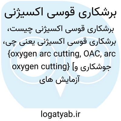 {oxygen arc cutting, OAC, arc oxygen cutting} [جوشکاری و آزمایش های غیرمخرب] نوعی برشکاری اکسیژنی که در آن قوس بین قطعۀ کار و الکترود لوله ای مصرف شدنی را اکسیژنی به وجود می آورد که از درون لولۀ الکترود بر روی قطعۀ کار فرستاده می شود