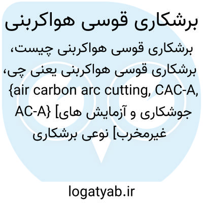 {air carbon arc cutting, CAC-A, AC-A} [جوشکاری و آزمایش های غیرمخرب] نوعی برشکاری قوسی که در آن گرمای حاصل از الکترود کربنی و فلز، با دمیدن هوای فشرده و زدودن فلز مذاب ایجاد می شود