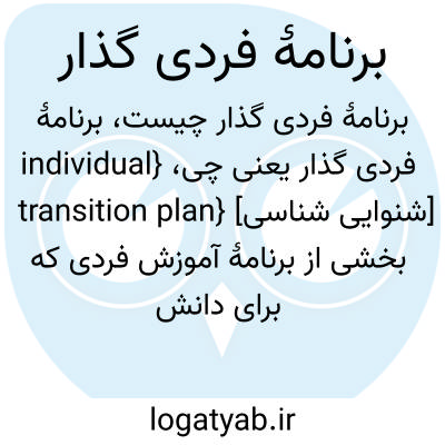 {individual transition plan} [شنوایی شناسی] بخشی از برنامۀ آموزش فردی که برای دانش آموزان توان خواه در آستانۀ 16 سالگی تنظیم می شود اختـ. بافگ ITP
