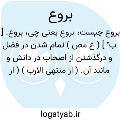 بروع. [ ب ُ ] ( ع مص ) تمام شدن در فضل و درگذشتن از اصحاب در دانش و مانند آن. ( از منتهی الارب ) ( از اقرب الموارد ). بَراعة. و رجوع به براعة و براعت شود. || به بالای کوه شدن. ( از اقرب الموارد ).
