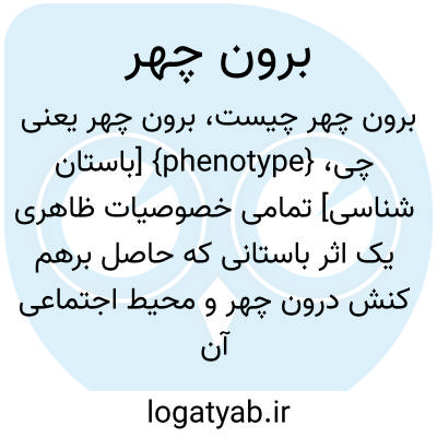 {phenotype} [باستان شناسی] تمامی خصوصیات ظاهری یک اثر باستانی که حاصل برهم کنش درون چهر و محیط اجتماعی آن است