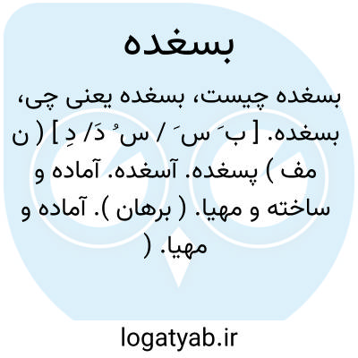 بسغده. [ ب َ س َ / س ُ دَ/ دِ ] ( ن مف ) پسغده. آسغده. آماده و ساخته و مهیا. ( برهان ). آماده و مهیا. ( جهانگیری ) ( انجمن آرا ) ( آنندراج ) ( ناظم الاطباء ). ساخته و آماده. بسغدیدن مصدر آن و آسغده نیز گویند. ( رشیدی ). سازواری. ( شرفنامه منیری ) ( مؤید الفضلاء ). ساخته چون سازگاری. ( لغت فرس اسدی ). آماده و ساخته شده باشد به جهت کاری و شغلی. ( سروری ). مرد ساخته برای کاری. ( مؤید الفضلاء ). رجوع به بسیجیده و شعوری ج 1 ورق 195 شود. ساخته شده، بود. ( صحاح الفرس ). بسیجیده باشد. ( اوبهی ):