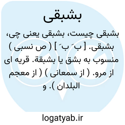 بشبقی. [ ب َ ب َ ] ( ص نسبی ) منسوب به بشق یا بشبقة. قریه ای از مرو. ( از سمعانی ) ( از معجم البلدان ). و رجوع به مرآت البلدان ج 1 ص 212 و اللباب ج 1 ص 126 شود.