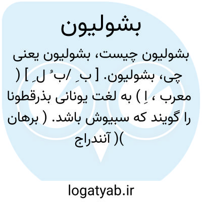 بشولیون. [ ب ِ /ب ُ ل ِ ] ( معرب، اِ ) به لغت یونانی بذرقطونا را گویند که سبیوش باشد. ( برهان )( آنندراج ). بزرقطونان است. ( اختیارات بدیعی ) ( بحر الجواهر ) ( ذخیره خوارزمشاهی ) ( تحفه حکیم مؤمن ). مأخوذ از یونانی، اسفرزه و بزرقطونا. ( ناظم الاطباء ).