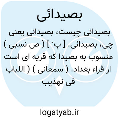 بصیدائی. [ ب َ ] ( ص نسبی ) منسوب به بصیدا که قریه ای است از قراء بغداد. ( سمعانی ) ( اللباب فی تهذیب الانساب ).