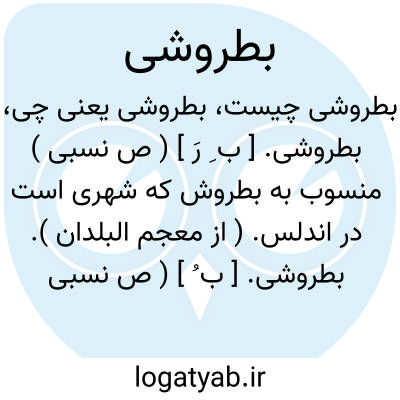بطروشی. [ ب ُ ] ( ص نسبی ) منسوب به بطروش از نواحی دانیه اندلس. ( از معجم البلدان ).