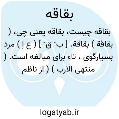 ( بقاقة ) بقاقة. [ ب َ ق َ ] ( ع اِ ) مرد بسیارگوی، تاء برای مبالغه است. ( منتهی الارب ) ( از ناظم الاطباء ). || واحد بقاق. یعنی: یک مرغ بسیارآواز. ( ناظم الاطباء ) ( از منتهی الارب ). و رجوع به بقاق شود.
