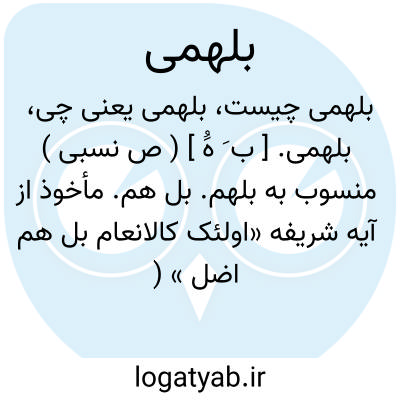 بلهمی. [ ب َ هَُ ] ( ص نسبی ) منسوب به بلهم. بل هم. مأخوذ از آیه شریفه «اولئک کالانعام بل هم اضل » ( قرآن 179/7 ). رجوع به بلهم شود: