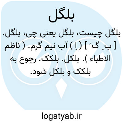 بلگل. [ ب ِ گ َ ] ( اِ ) آب نیم گرم. ( ناظم الاطباء ). بلکل. بلکک. رجوع به بلکک و بلکل شود.