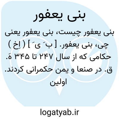 بنی یعفور. [ ب َ ی َ ] ( اِخ ) حکامی که از سال 247 تا 345 هَ. ق. در صنعا و یمن حکمرانی کردند. اولین آنها محمدبن یعفور ( 247 هَ. ق. ) و آخرینشان عبداﷲبن قحطان ( 352 - 378 هَ. ق. ). این سلسله بتدریج از اهمیت افتاد. ( طبقات السلاطین ص 81 ).