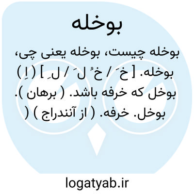 بوخله. [ خ َ / خ ُ ل َ / ل ِ ] ( اِ ) بوخل که خرفه باشد. ( برهان ). بوخل. خرفه. ( از آنندراج ) ( از ناظم الاطباء ) ( از انجمن آرا ): در سند و هند جرب و حصبه باشد. اسافل به آرد جو و بوخله طلا کنند. ( تاریخ بیهق ص 30 ). رجوع به بوخل شود.