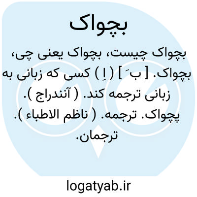 بچواک. [ ب َ ] ( اِ ) کسی که زبانی به زبانی ترجمه کند. ( آنندراج ). پچواک. ترجمه. ( ناظم الاطباء ). ترجمان. دوزبان. پژواک. رجوع به پچواک شود.