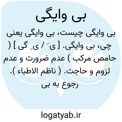 بی وایگی. [ ی َ / ی ِ گی ] ( حامص مرکب ) عدم ضرورت و عدم لزوم و حاجت. ( ناظم الاطباء ). رجوع به بی وایه شود.