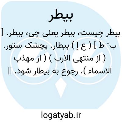 بیطر. [ ب َ طَ ] ( ع اِ ) بیطار. پچشک ستور. ( از منتهی الارب ) ( از مهذب الاسماء ). رجوع به بیطار شود. || درزی. ( منتهی الارب ). خیاط و درزی. ( از ناظم الاطباء ).