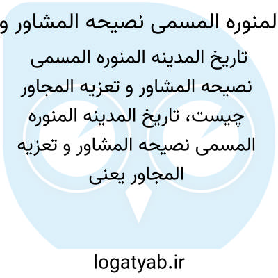 [ویکی نور] نصیحة المشاور و تسلیة المجاور، نوشته ابن فرحون ابومحمد عبدالله بن محمد بن فرحون مالکی کتابی است، مختصر و دربردارنده قسمتی از تاریخ مدینه منوره و اتفاقاتی که نویسنده آن ها را مشاهده کرده است، می باشد.