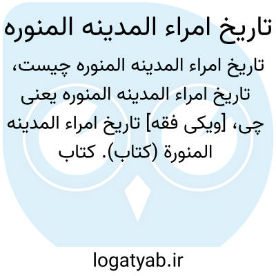 [ویکی فقه] تاریخ امراء المدینه المنورة (کتاب). کتاب «تاریخ امراء المدینه المنورة»، تالیف عارف احمد عبدالغنی به زبان عربی در موضوع حاکمان شهر مدینه می باشد.