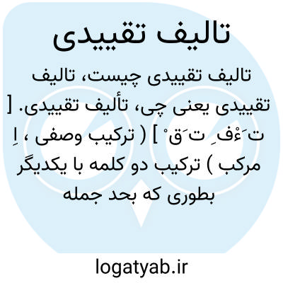 تألیف تقییدی. [ ت َءْف ِ ت َق ْ ] ( ترکیب وصفی، اِ مرکب ) ترکیب دو کلمه با یکدیگر بطوری که بحد جمله کامل نرسد. در مقابل تألیف خبری که جمله کامل را گویند. مرکب ناقص. در مقابل مرکب تام: انسان سفیدپوست است. رجوع به اساس الاقتباس چ مدرس رضوی ص 14، 63، 64، 68 و تألیف خبری شود.