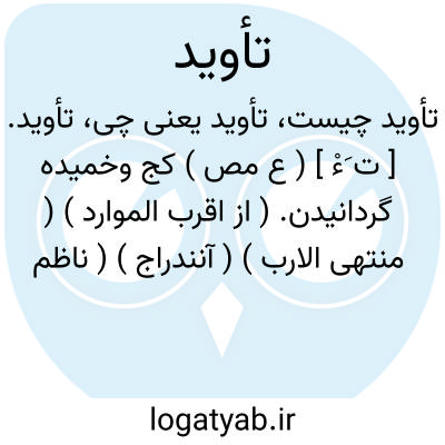 تأوید. [ ت َءْ ] ( ع مص ) کج وخمیده گردانیدن. ( از اقرب الموارد ) ( منتهی الارب ) ( آنندراج ) ( ناظم الاطباء ). کج کردن. ( از قطر المحیط ).