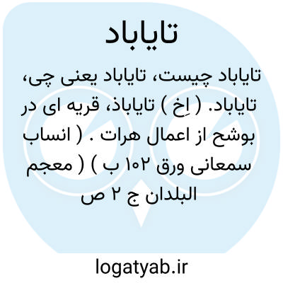 تایاباد. ( اِخ ) تایاباذ، قریه ای در بوشح از اعمال هرات. ( انساب سمعانی ورق 102 ب ) ( معجم البلدان ج 2 ص 357 ). در مرآت البلدان ج 1 ص 337 این کلمه به تصحیف تایاد آمده است. رجوع به تایباد، طایباد، طیبات و تایب آباد شود.