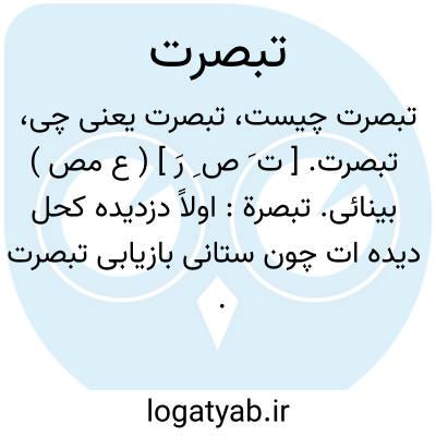 تبصرة. [ ت َ ص ِ رَ ] ( ع مص ) ایضاح. ( تاج المصادر بیهقی ) ( ناظم الاطباء ). به اصطلاح مصنفین، توضیح و تشریح کردن مطلبی. ( فرهنگ نظام ). || بینا کردن. ( ترجمان علامه جرجانی ) ( منتهی الارب ) ( آنندراج ) ( غیاث اللغات ). بینا گردانیدن. ( فرهنگ نظام ). بینائی: تبصرة و ذکری. ( قرآن 50 8/ از المرشد ص 59 ). || شناسا کردن. ( منتهی الارب ). مایحمل علی العلم بالشی و ستبانته. ( قطر المحیط ). || تأمل. || نیک نگریستن. ( ناظم الاطباء ). || عبرت نمودن. ( ترجمان علامه جرجانی ). || مراد از عینک نیز داشته اند. ( غیاث اللغات ) ( آنندراج ). رجوع به تبصرت شود.