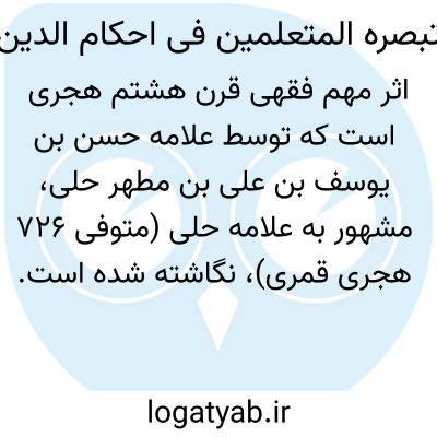 [ویکی فقه] تبصرهالمتعلمین فی احکام الدین (کتاب). تبصرة المتعلمین فی احکام الدین تالیف ابو منصور جمال الدین حسن بن یوسف بن مطهر حلی اسدی معروف به علامۀ حلی (م ۷۲۶ ق).
